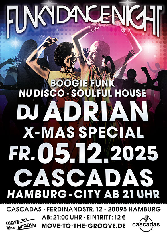 18 Jahre sind die Grooveaholics von der Funky Dance Night Hamburg bereits die unermüdlichen Reiter der Rillen, die für lokale, nationale und internationale Hüftenschwinger und Körperschüttler die passenden Beats auf die Plattenteller werfen. Ob in der Schanze, auf dem Kiez, im Stadtpark oder im Planten un Blomen, im 13.Stock, im Nochtspeicher, im Landhaus Walter oder dem Café Schöne Aussichten, immer war und ist die Party garantiert und die Tanzlust befriedigt. Die DJ-Sets sind ein Cocktail aus Soul & Funk Perlen, Soulful House Hits, Nu Disco und Boogie Funk Bangern, sorgfältig ausgewählt und mit Liebe gemischt. Abendkasse: 12€