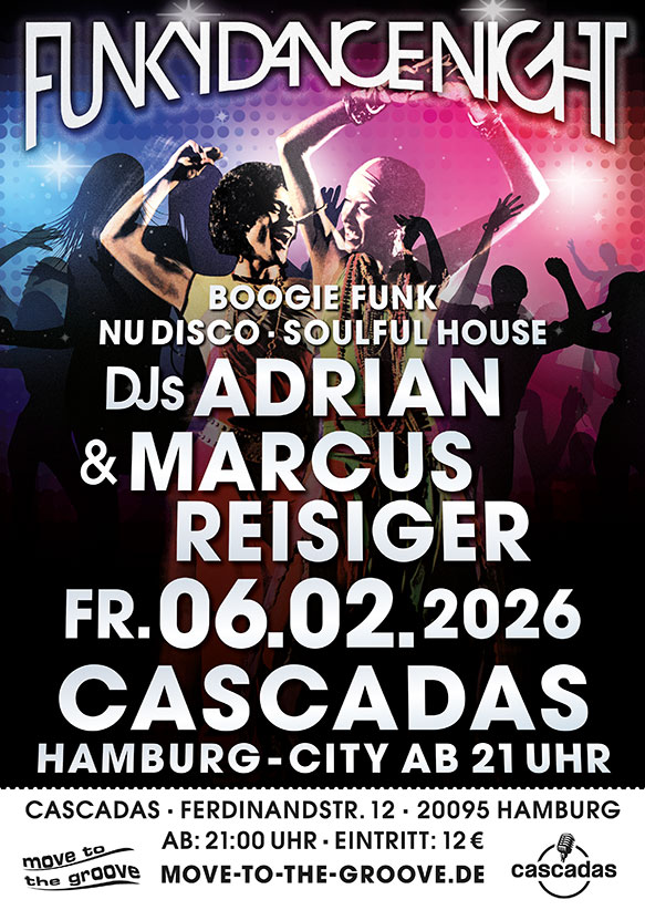 Bereits im 19. Jahr sind die Grooveaholics der Funky Dance Night Hamburg die unermüdlichen Reiter der Rillen, die für lokale, nationale und internationale Hüftenschwinger und Körperschüttler die passenden Beats auf die Plattenteller werfen. Ob in der Schanze, auf dem Kiez, im Stadtpark oder im Planten un Blomen, im 13.Stock, im Nochtspeicher, im Landhaus Walter oder dem Café Schöne Aussichten, immer war und ist die Party garantiert und die Tanzlust befriedigt. Die DJ-Sets sind ein Cocktail aus Soul & Funk Perlen, Soulful House Hits, Nu Disco und Boogie Funk Bangern, sorgfältig ausgewählt und mit Liebe gemischt. Abendkasse: 12€